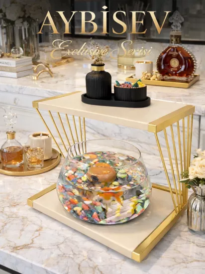 Işıklı Betta Akvaryum & Fanusu Modern Tasarım LED Aydınlatmalı Gold Temalı